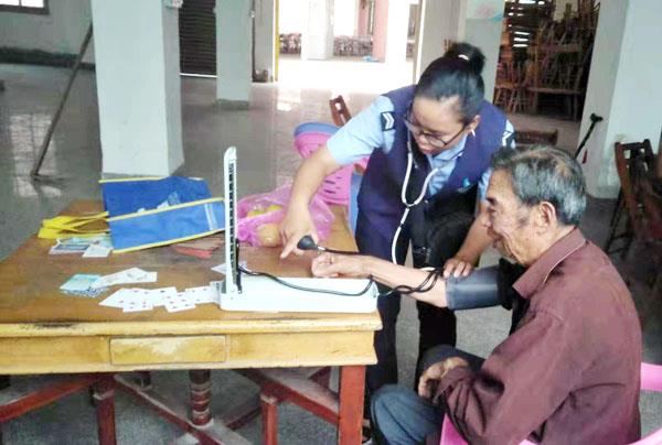 林芳之前曾从事过医务工作,特别关心一些老年人的身体健康。这段时间,林芳在入户走访时,发现辖区内有不少老弱病残居民身体不好,天气炎热,老年人腿脚不便,出门困难。于是她想发挥自己的医疗特长,为老人提供医疗服务。