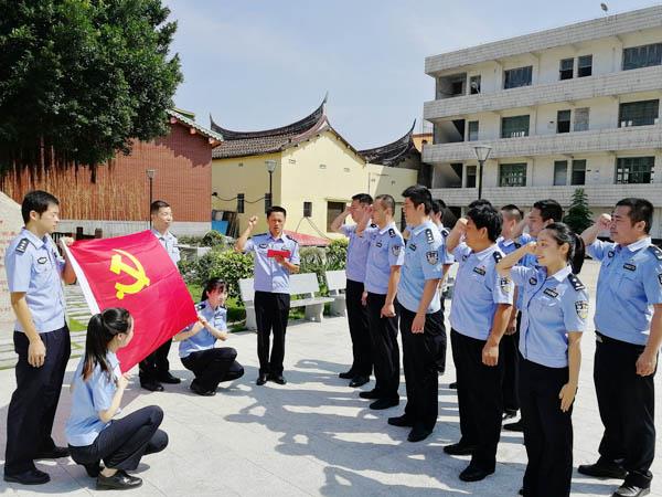 本报讯 近日,黄石派出所全体党员来到木兰陂纪念馆,感悟历代英雄勇立潮头、干在实处、久久为公的为民情怀。在木兰溪畔,全体党员重温入党誓词,面对党旗,民警们高举右手,紧握拳头,庄严宣誓,铮铮誓言久久回荡,大家用高昂、奋进而又庄严的宣誓表达了对中国共产党的忠诚和热爱。 (陈丽云)
