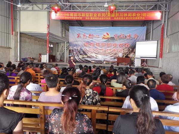 连日来,湄洲湾职业技术学院组织支农小分队师资送培下乡,深入仙游县石苍乡济川村开展2019年新型职业农民暨美丽乡村休闲农业培训班,培训当地农民学员120人。