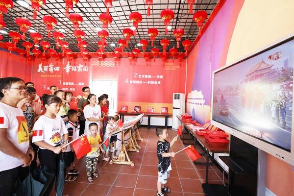 展览现场,孩子们的小手拉着大人的手往智慧莆田区钻,数字体验馆太吸引他们了!孩子们参观完莆田元素的学习用品区、家文化区,迫不及待地开始了手工DIY,专注地按提示制作起祝福卡,发挥才智,以创意礼献新中国70华诞!孩子们脸带笑,手在动,各式印花器、印泥、卡纸、笔轮番上阵,写上“我爱您,祖国!”“祝福祖国越来越强”等寄语,挂在礼赞祖国的创意长廊区,还仰着天真的小脸在寄语下拍照留念。现场,孩子们还玩一把莆田智造、寓意莆田飞速发展的飞行棋,玩得不亦乐乎,家长们还当场请售卖。智游莆田区,孩子们兴高采烈地跟智能机器人互动体验,以绶溪“绿心”为背景拍照,即刻冲印,留存印象,储存回忆。随后又参观诗书画影展,跟着大人们翻看大幅面城乡建设成就展画册,感受莆田70年来的巨大变化。