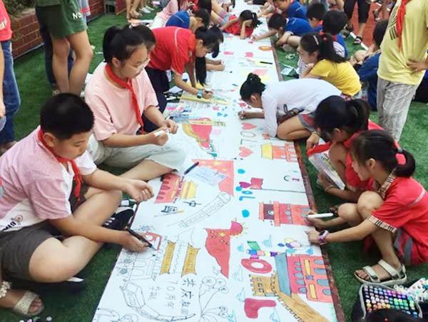 日前,仙游县坝下中心小学开展“我爱祖国”长卷绘画活动,孩子们通过手中的画笔画出心中对祖国的热爱之情和对未来美好生活的憧憬。孩子们通力合作创作一幅长卷,大家奇思妙想,用形式多样的绘画材料,把画面描绘得绚丽多彩。鲜艳的五星红旗,雄伟壮丽的天安门、色彩缤纷的气球……在温馨、和谐的合作氛围中,一幅幅栩栩如生的画面逐一呈现。