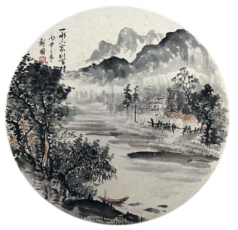 国画《一水人家别有村》 张新国/作