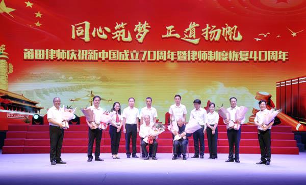 本报讯 为庆祝新中国成立70周年,纪念律师制度恢复40周年,10月26日晚,由市律师协会承办的“同心筑梦,正道扬帆”文艺晚会在莆仙大剧院举行。市人大常委会副主任宋建新、市政协副主席林惠中出席表彰大会。