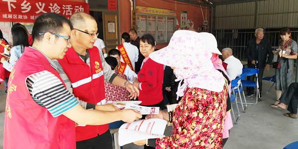 本报讯 11月7日,城厢区政协机关党支部以“牢记初心使命,送医送药下乡”为主题开展党日活动,组织机关党员赴灵川镇太湖村开展送医送药下乡义诊活动、慰问挂钩贫困户等。图为机关党员志愿者向群众分发健康宣传资料。 (陈剑冰 毓骏)