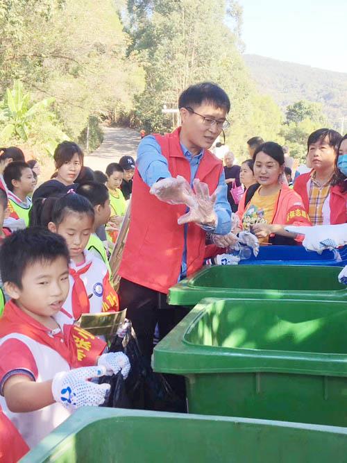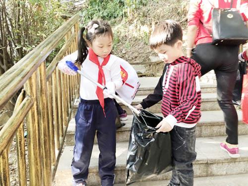 小朋友们穿着红马甲,一手拿着垃圾袋,一手拿着垃圾夹,将石室岩旅游路上的纸屑、塑料瓶、食品袋、果皮、烟头等垃圾夹起放入垃圾袋中。同学们不怕脏、不怕累,个个干劲十足。不到半小时,每个人手中都已“战果累累”,周围的环境也焕然一新。捡完垃圾后,同学们还认真学习垃圾分类知识,将捡到的垃圾一一分类,放入相应的垃圾桶中,活动现场气氛热烈,每个学生都积极参与到其中。