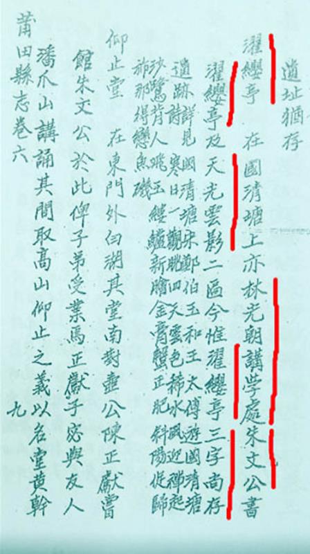 清代翰林院编修张琴《民国莆田县志》:“濯缨亭”遗址犹存(1945年) 图/吴国柱