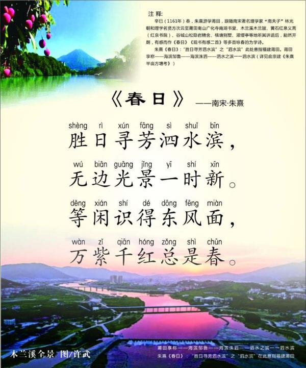 宋·朱熹《观书有感二首》之二“溪舟自行”即木兰溪“木兰春涨”现象。