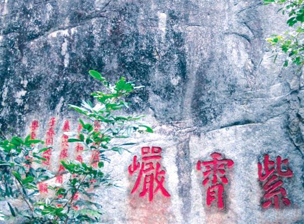 释普慧,字钝牧,莆田人,清代世祖顺治间(1644~1661)诗僧,普慧工诗,性喜偕友云游。九华东北有岩曰紫霄,上筑精舍名迎福院,宋宁宗嘉定间(1208~1225)杜塘方明仲隐居于此,捐资助建海会塔法堂、钟楼、禅室等。方卒,僧为塑像,祀于院之东厢。明嘉靖间(1522~1566),倭寇毁,丙寅(1566),高僧月顺重建大雄殿,复增钟鼓楼,更臻完整。山麓有凤林寺,寺前有招隐阁及放生池、池泮大树,合抱数十围,乃千年老榕。后有玉皇殿,皆神宗万历戊申(1608)郡人太守林鸣盛所建。登峰顾盼,碧岫青岩,光分势展,无石不奇,有似狮子、有似美人,兽物禽人,无不毕肖生神,其风化耶,或天然耶,或鬼斧神工之就耶?直欲提壶结伴,竹杖芒鞋,锡卧歌吟,停扪忘归。峰之巅有一石,特为削拔,孤高列戟,作君临万邦状,曰万岁石,丛间有石似丹,烟云横锁,吐雾藏霞曰雷轰。五色灿烂,映岚收黛者曰玻璃峡。满目异境,架梁而渡者曰天台桥,过桥后别有洞天,终为罗汉洞,有石门,有仙人桥,仙人塜,洞前镇立石鼓,大可五六尺,敲击有声,洞中阴凉生风,广纳百众,冷泉污行成带,玉沙精石,清莹可爱,群生小螺,缺尾部曰无尾螺,俗传寺僧开荤,私煮而食,住持责令倒山涧,仍得活,故留圣迹,或为僧有道行。壁龛有笑面石佛,以水拂洗,更现笑容,由洞东下则远山挂瀑,点翠涌螺,悬崖怪石,卧龙回雁,数之不尽,山径石壁常现游人留题,句皆不俗。宋时郡人蔡襄曾游是处,诗云:“十里迢迢上紫霄,半空飞翠尘中饶。雷轰罗汉峰前石,路入天台洞里桥。……”不知何故,而缺其半,明正统间(1436~1449),邑人进士周莹续之曰:“浮世百年犹大梦,夕阳千古送寒潮。凭高不尽登临兴,极目长空去雁遥。”“紫霄怪石”已成莆田二十四景之第十景。