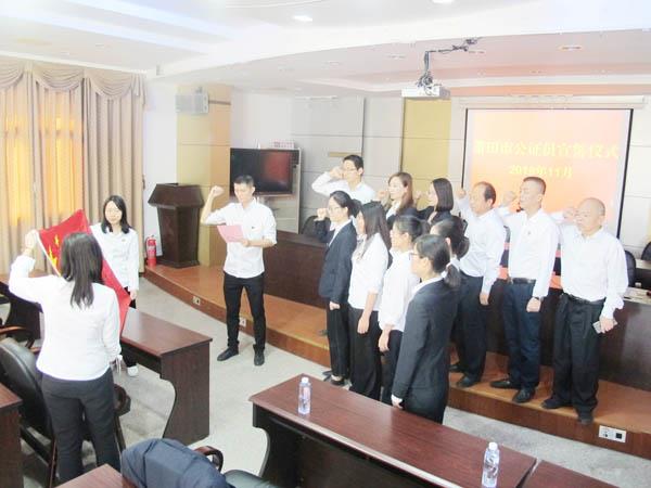 近日,市公证协会组织全体公证人员前往涵江区大洋闽中爱国主义教育基地闽中游击支队司令部旧址陈列馆开展“一学三比”暨“不忘初心 牢记使命”主题教育活动。党员公证员重温入党誓词,新加入公证员举行公证员宣誓仪式,在讲解员的讲解下重回那段峥嵘岁月。公证员表示,要永守初心,勇担使命,大力继承和发扬闽中革命精神,为社会提供优质法律服务。 (黄晓 毓骏)