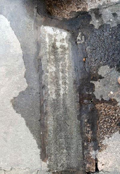 平海卫学残碑高108厘米,宽26.5厘米。现被铺于梅峰寺大悲殿西侧地面。