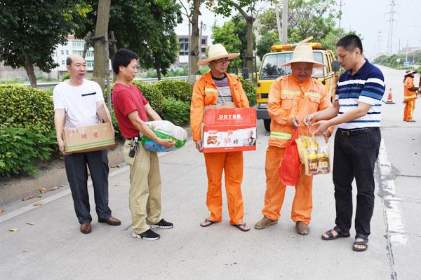 本报讯 随着连日的酷暑,8月13日上午,秀屿公路分局教导员邱剑光带领相关人员前往基层班站,向长期坚守在高温酷暑环境下,不畏艰辛、履职尽责的一线班站职工表示诚挚慰问,叮嘱他们在高温工作环境下注意防暑降温,加强自我防护,保障身心健康,并送去了蜂蜜、绿豆等防暑降温物资。 (吴芹芹 苏俊杰)