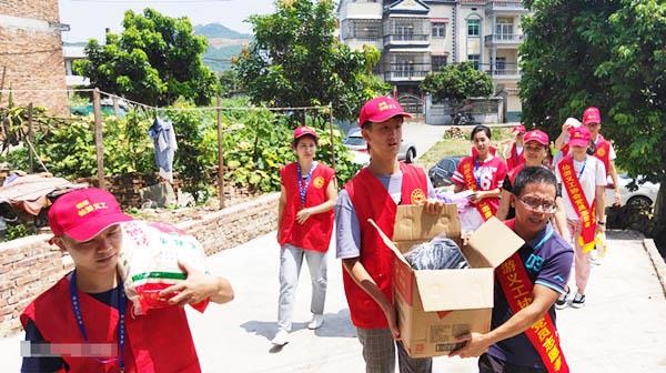本报讯 昨日,仙游义工协会的20多名志愿者冒着烈日前往鲤城、龙华、大济、度尾等乡镇,开展“精准扶贫爱心助学”活动,共为贫困生、贫困户发放助学、助贫款及慰问品等爱心物资钱物总价值1万多元。