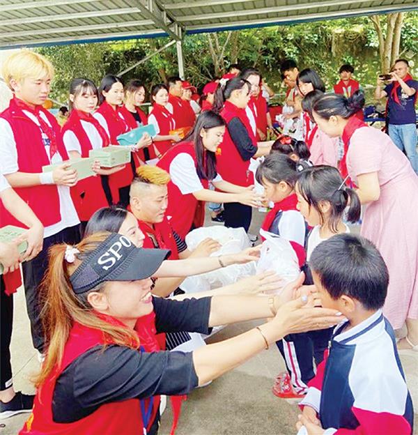 在活动中,善心扶贫协会的爱心志愿者与学生们进行了“系红领巾唱队歌”,并和师生一起升国旗奏国歌。接着,志愿者们和孩子们唱起《感恩的心》,表演了优美的舞蹈,互动进行了“老鹰捉小鸡”“抢凳子”“你笑起来真好看”等游戏,并共同放飞美丽缤纷的彩球。最后,爱心人士给11名家庭困难的学生发放总额15200元的慰问金,并给全校留守儿童赠送了学习大礼包,让孩子们在优美的歌声中欢呼雀跃,人人脸上绽放着灿烂的笑容。
