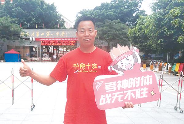 6月7日,2021年高考清凉开场,但考场外依然是焦急等待的父母。很多家长一大早就陪着孩子来到考场外,而且父母们都穿得十分有“意思”,各种“应援”道具十分抢眼!
