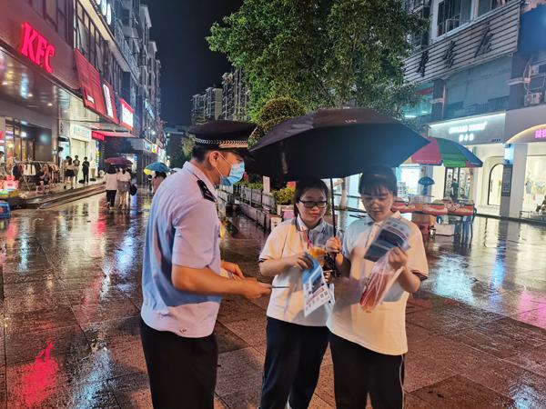 本报讯 6月9日,鲤城派出所副所长李清海带队联合鲤城街道在结束高考安保后来到鲤中步行街开展“平安三率”暨反诈宣传活动。期间,鲤城所各巡防民警、社区民警与街道工作人员针对高考后容易出现的五种涉考诈骗行为,精心制作了“反诈试卷”,现场邀请考生和家长参加有奖竞猜。当晚虽然下着小雨,但蜀黍们热情宣讲,主动向过路考生、家长发放宣传单、讲解防骗知识。活动现场,现编的顺口溜朗朗上口,内容引人注目,一句句“提前查分不要点 请再耐心多一点”“高考改分不要信 都是骗钱小把戏”等温馨话语吸引了广大群众驻足观看、参与。活动结束后,虽然蜀黍们的衣襟早已被汗水打湿、雨水浇透,但看着各个考生和家长们满满收获的表情,蜀黍们都开心的笑了。一个个接地气的大拇指点赞好评,为这场暖心的活动画上了圆满的句号。(郑银尔 陈鲤榕)