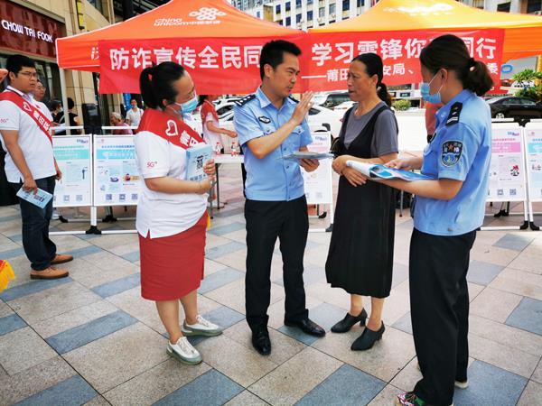本报讯 6月11日,镇海派出所联合联通公司开展反诈主题宣传活动。活动现场,民警结合镇海辖区真实案例,详细讲解常见几种电信网络诈骗手段和防范技巧,协同联通工作人员积极回答群众问题、分发反诈知识宣传单,并同时指引群众扫码安装“ 国家反诈中心”APP,关注“金钟罩”反诈小程序,利用网络化的方式深化反诈宣传,提升辖区群众的反诈骗意识。此次活动共派发各类反诈宣传资料千余份,增加注册人数五百余人,解答群众问题百余起,取得了良好的宣传效果。(黄涛 陈娟)