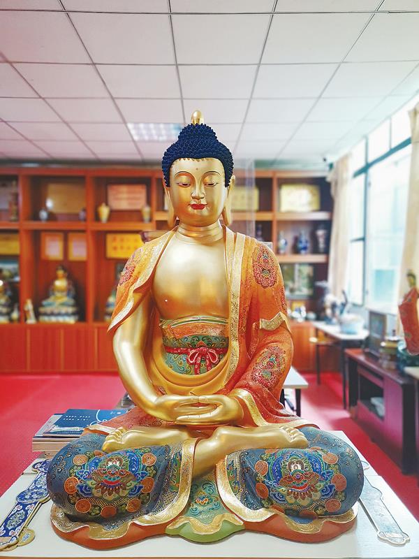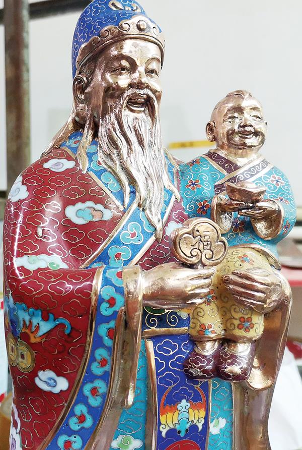 我也是从一则新闻中,才了解到莆田原来也有人在做景泰蓝。那是2017年,在湄洲妈祖祖庙莆田会馆,经扛旗世界纪录认证师认证,正式确认林辉制作的作品为世界最高的珐琅面无拼接景泰蓝妈祖像。林辉说,他做的景泰蓝是南派,铜铸胎掐丝珐琅。北京那边的北派景泰蓝,胎体不是铜铸的,是靠敲出来的。林辉说,因为他的技艺,南派景泰蓝才逐渐为人所认知。