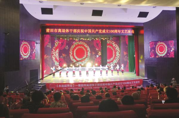 本报讯 6月25日下午,莆田市青少年宫梦想剧场,由市委组织部、市委老干部局、市委离退休干部工委主办,市老年大学承办,市青少年宫协办的“《永远跟党走》——莆田市离退休干部庆祝中国共产党成立100周年”文艺演出隆重上演。