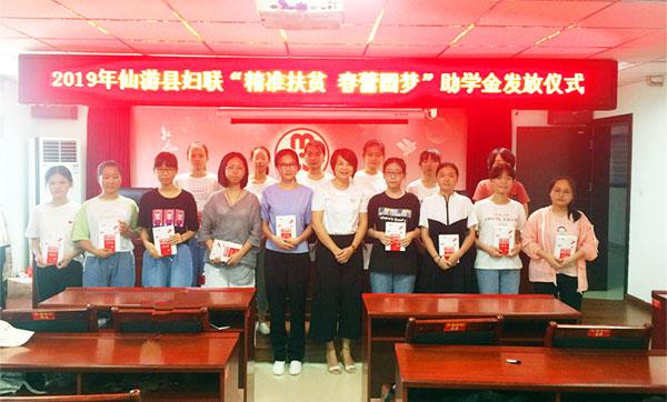 8月27日,仙游县妇联举行2019年“精准扶贫·春蕾圆梦”助学金发放仪式,23名来自贫困家庭的受助女大学生每人喜获2000元助学金;28日,在该县妇联牵线搭桥下,5名省妇联慰问、“游好人”新结对的贫困女大学生和市妇联资助的8名应届大学生也每人现场获得资助5000元。至此,在新学期开学前,该县妇联以“精准扶贫·春蕾圆梦”为主题的贫困大学生助学行动,共已完成资助品学兼优、家庭贫困的女大学新生36名,助力她们圆了读书成才的梦想。