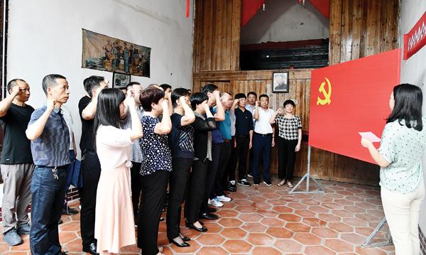 面对鲜红的党旗,全体党员庄严地举起右手,重温入党誓词。大家纷纷表示,要结合党史学习教育和“再学习、再调研、再落实”活动,继承革命传统,传承红色基因,进一步发扬革命精神,坚定理想信念,以更加饱满的工作热情和昂扬的精神状态投入工作,为我市经济社会发展作出更大的贡献。(时报记者 郑育俊)