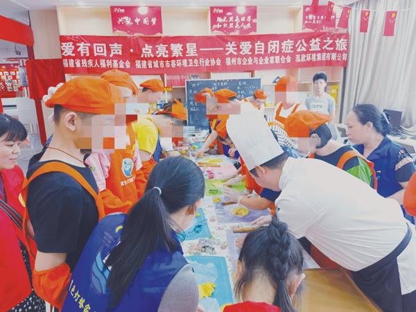 为弘扬助残爱残的关爱意识,福建省残疾人福利基金会、福建省城市市容环境卫生行业协会、福州市企业与企业家联合会、泓欣环境集团不忘初心,携手莆田市残联、莆田市蓝色灯塔助残帮扶中心,以关注孤独症,提高生活品质为主题,共同开展帮扶孤独症患者活动。