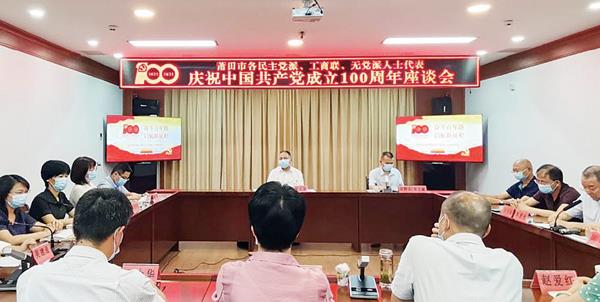 本报讯 近日,我市召开各民主党派、工商联、无党派代表人士庆祝中国共产党成立100周年座谈会。中共莆田市委常委、统战部部长陈志强出席会议并讲话。