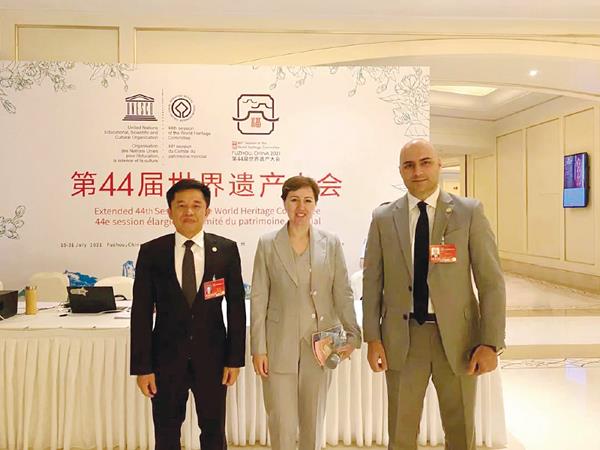 陈玉树(左一)出席第44届世界遗产大会,与外国友人合影