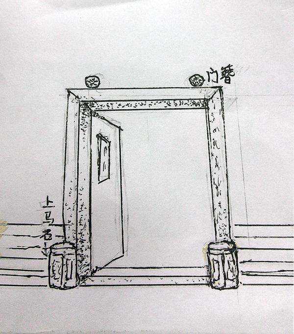 (二)簪、当。莆仙和福建沿海许多地方旧式民居建筑形式相似,例如大门横楣上面两端,各插进一个露头有装饰的横桩,(如图)名称为门簪(Zan),如果门第高贵的门簪上面可挂荣宗耀祖的匾额。因为簪字音与官话“当”(dang)相近,有人就附会说这是“门当户对”的“门当”。其实“簪”为名词,“当”为表叙词,完全不同。这是故意取其中门第内容,变词来凑趣而已。