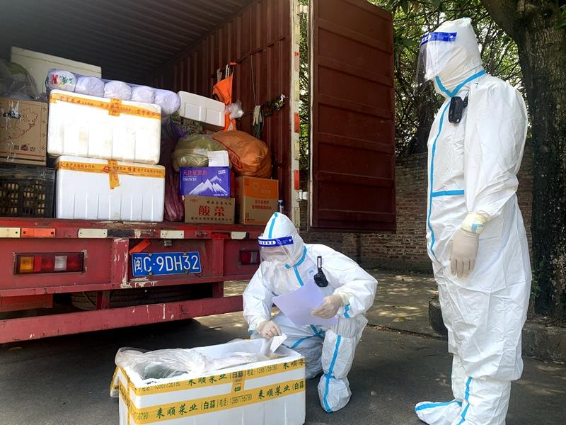 “婚期我在岗,工作‘不打烊’”。9月9日上午,莆田出入境边防检查站执勤二队民警余凌玮佩戴防疫装备,正在对伯利兹籍“丰驰”轮供应物料进行检查。