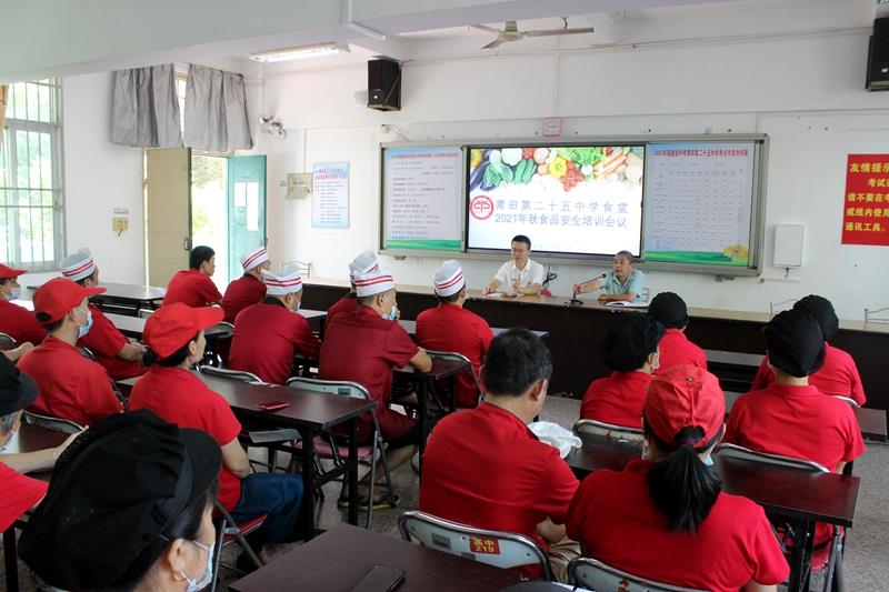 为加强学校食堂食品卫生安全,提高从业人员素质,创建文明校园。9月8日下午,莆田第二十五中学召开食堂全体员工培训会议。该校分管副校长陈金华出席,食堂所有从业人员参加。