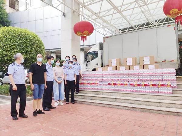 民建市直总支部副主委、第三支部主委、莆田市张氏生态旅游开发有限公司董事长张德才为莆田市交警支队捐赠100箱水,546箱糕点。