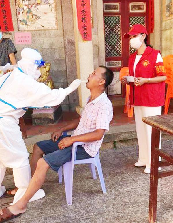 仙游县妇联干部、巾帼志愿者投身防疫工作第一线,配合专业医护人员做好入户核实检测工作。