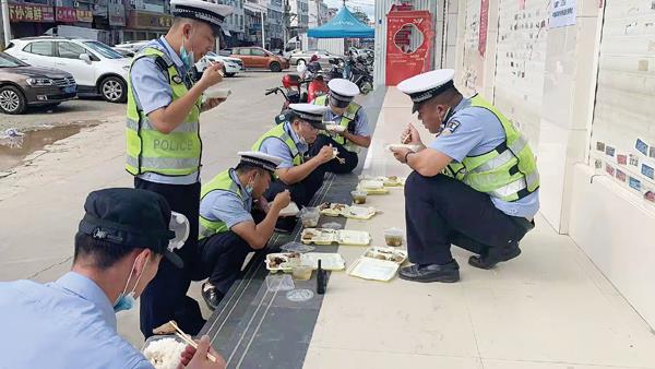 这就是奋战在抗疫一线交警同志的“吃饭日常”。