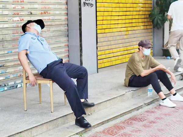 荔城交警在仙游支援点倚靠着凳子片刻休息。吃饭时他们捧着盒饭或蹲或站,站在角落里、趴在后备箱上……狼吞虎咽,坐在车里打开车窗扒拉一口就赶紧望向路面,抓紧时间吃完继续“干活”。有时忙碌到深夜,简单吃泡面充饥。