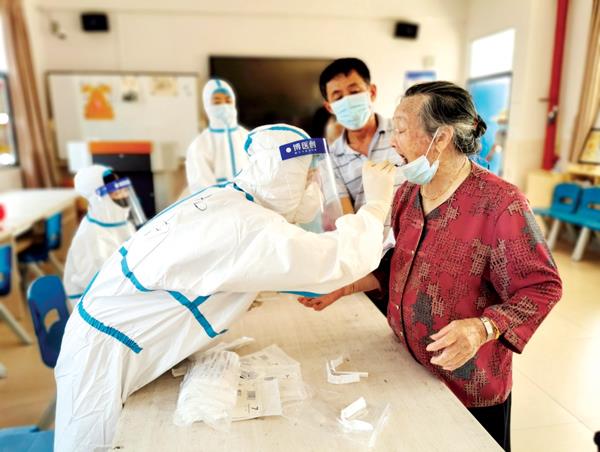 本报讯 9月15日,湄洲岛开展全员核酸检测。全区机关干部、党员等组成志愿者服务队在各个检测采样点上做好引导和服务,确保全员核酸检测现场井然有序。
