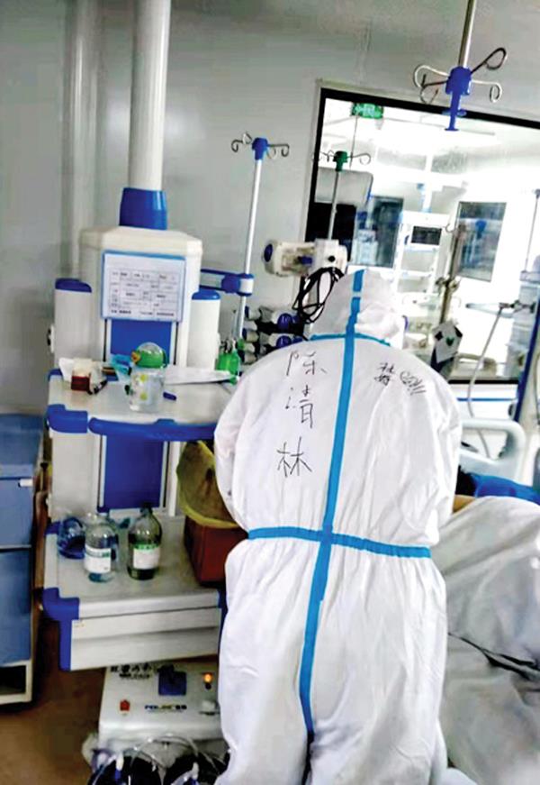 陈清林在隔离病区护理患者