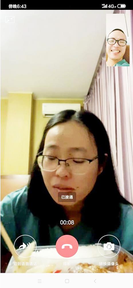 张莹莹通过微信与弟弟进行视频交流