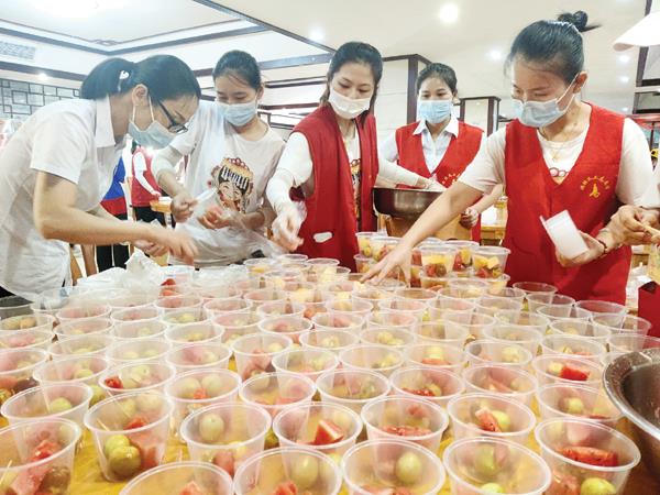“你们在前方守护安全,我们在后方也要尽一份力!”这是全体祖庙人的心声。在林金赞董事长的安排下,湄洲妈祖祖庙食堂为疫情防控人员精心准备晚餐,还特地准备了115公斤哈密瓜、80公斤冬枣、5公斤珍珠果、150公斤西瓜。希望温暖每一位“防疫战士”的心,传递妈祖故乡人的大爱情怀,凝聚共同防控疫情的强大力量,早日打赢这场疫情狙击战。