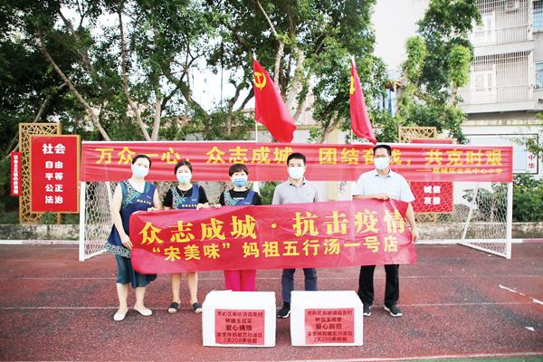 本报讯 疫情期间,我市各爱心企业积极响应,踊跃为我市抗疫工作奉献爱心。疫情发生后,宋美味妈祖五行汤体验店先后为莆田学院、荔城区北高中心小学等核酸检测点等送去精心烹饪的妈祖五行养生水饺1000多份,为奋战在“疫”线的工作人员送去暖暖的“爱”。(时报记者 翁志鹏)