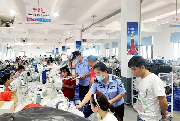 本报讯 连日来,平海派出所结合“一标三实”流口管理工作,组织社区民警深入辖区企业工厂,督导防疫工作落实情况,开展普法宣传,助力企业复工复产。期间,在平海镇上店村安美鞋业有限公司,社区民警通过实地走访,认真检查企业防疫消杀、测体温、戴口罩、人员出入登记等疫情防控措施落实情况,加强对企业的内部安全防范指导。同时,利用警务通,认真核实流动人口登记数据,通过平台数据核对筛查,全面梳理,同步更新;落实为民服务职能,积极推进便民服务措施;推广“福建治安便民”微信公众号,实地操作,现场教学,引导群众“网上办、线上办”。