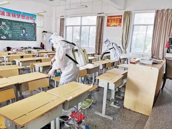 “在校园卫生环境上,进行拉网式集中整治、专业消杀,确保不留死角,为返校师生营造一个安全健康的工作学习生活环境。”李永清介绍说,复学后,疫情防控形势变得更加复杂,责任更加重大,所以师生返校前,必须做好排查工作,详细掌握师生及共同居住人的健康状况,“在学校入口关上,我们做了充分的准备,提前备齐备足防控物资,设置好学校医务室、临时观察室、体温检测身份识别的专门通道等,对学生上放学、食堂用餐等人员集中的地方实行错峰分流,并进行模拟演练。”
