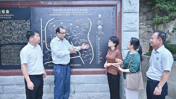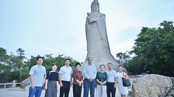 7月30日下午,联合国教科文组织驻华代表处代表夏泽翰教授一行赴祖庙考察交流。湄洲妈祖祖庙董事会董事长林金赞陪同联合国教科文组织驻华代表处代表夏泽翰教授一行体验妈祖非遗文化,并参观湄洲妈祖祖庙。