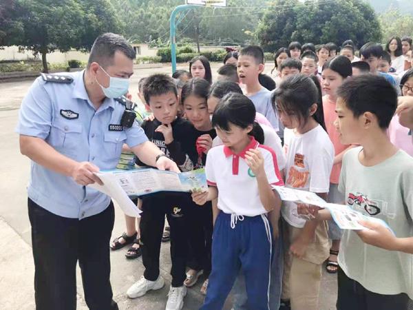 伴随着一声声清脆的“老师好”,学校又重新热闹了起来。10月20日上午,民警曾震天走进校园开展“大手拉小手”主题法治课,通过发放宣传资料、现场教学、互动交流等形式,宣传安全防范、防诈骗、反诈骗内容。