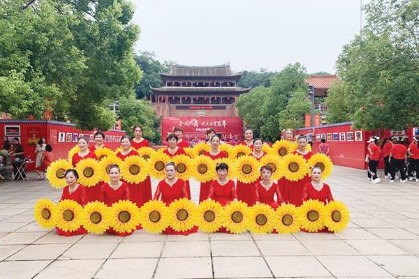 ▲南门社区组织老年人参加“全闽共舞 欢庆建党百年”福建省第四届广场舞大赛