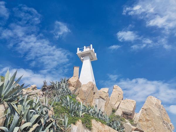 沿着海岸边的美丽步道,我们往山体的另一面漫步。另一面没有房屋,但有很多的树,有怪石,还有白色的灯塔。矗立在山顶上的灯塔,给这座有着神秘名字的小岛,增添了浪漫的色彩。