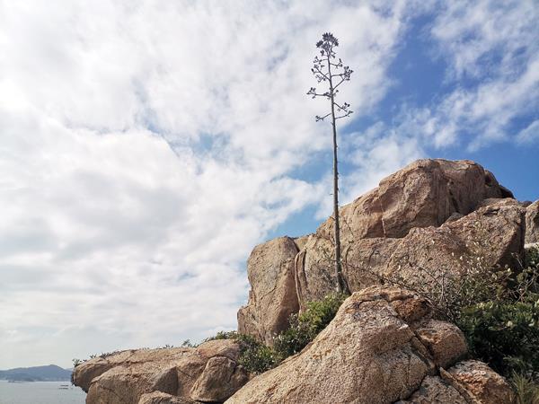 从吴兄家屋后出发,我们遇见了一棵从没见过的“树”,我夸这树生长得漂亮,“气质”如同“小白杨”。谁知一拐角,发现这并不是一棵树,而是大芦荟一类植物的花。如此高大、一柱擎天的花,我是第一次见到,大家也感到惊讶!