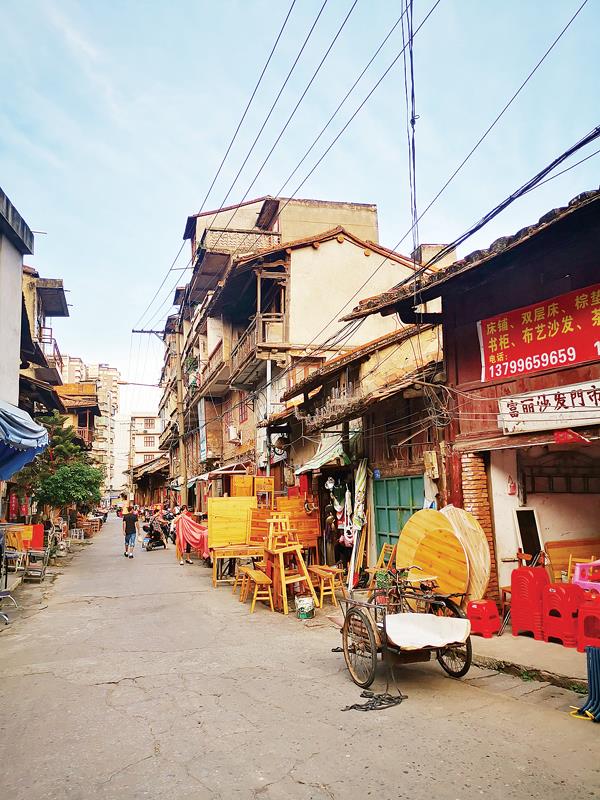 自清代到上世纪五十年代,这里一直是涵江著名的鞋革专业街,有大大小小鞋号二三十家,杂以金银首饰加工店、竹木器具手工场、油漆店、书画裱褙店等小店,构成了小街的商业业态。如今,隐身于现代城市背后,后街名符其实地成了“后街”,咫尺之外的保尾街的市声,感觉离得是那么遥远。喧嚣之外的安静、繁华背后的寂寞,仿佛成了写照。后街当下最多的是竹木制品店,摆出店门的木凳、藤椅、鞋架和塑料矮凳、简易小桌,难以吸引行人驻足。偶尔做成一单生意,难掩店主人无奈的叹息。