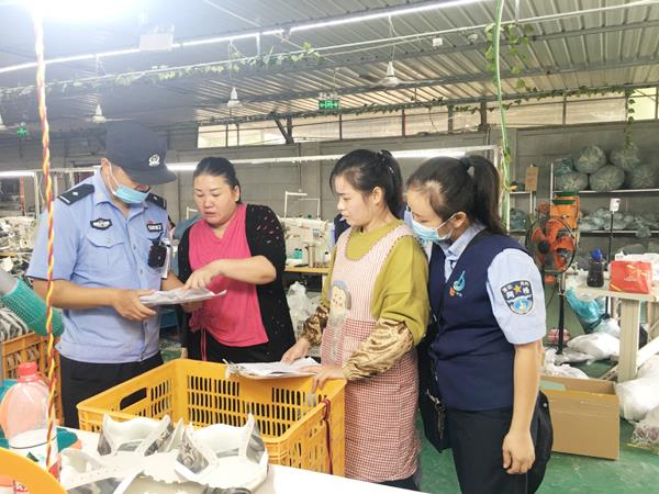 本报讯 日前,月塘派出所民警对辖区的大小工厂家庭作坊开展“制售假”突击检查。期间,民警对辖区内所有大小工厂、家庭作坊进行突击检查,对它们的鞋服原材料、制作材料、成品、订单等整个流水线进行细致核对,要求相关负责人提供合法有效的证明材料,确保不存在“制售假”的情况。同时,民警还对存在的消防问题予以指出并现场整改清楚。本次检查取得有效的震慑效果。(韩宇福)