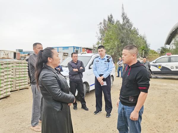 环境就是民生,蓝天就是幸福。东峤派出所在此次昆仑专项行动中将打击矛头指向前沁村木材加工区一家水泥砖厂。该厂未取得排污许可证,粉尘污染严重危害辖区居民的身体健康。东峤派出所表示要坚决贯彻“零容忍打击、护好碧水蓝天”的理念。前沁村社区民警郭逸凡与秀屿区环保局执法队密切配合、高效联动共同关闭水泥砖厂,严厉打击了破坏环境的行为,全面加强了辖区生态环境保护。图片:社区民警郭逸凡与秀屿区环保局执法队密切配合(章曦尹)