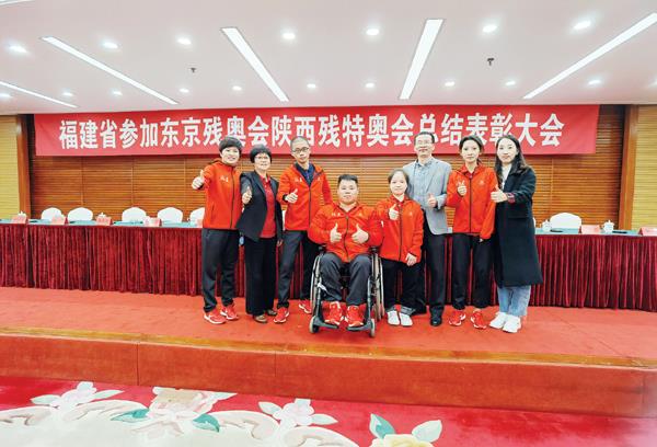 本报讯 11月19日下午,福建省参加东京残奥会、陕西残运会特奥会总结表彰大会在福州召开。我市翁卿、林文榜、詹智峰、林馨4名残疾人运动员代表参加了本次总结表彰大会。